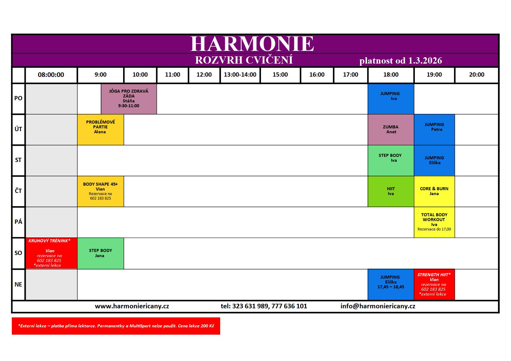 ROZVRH CVIČENÍ PLATNÝ OD 9.2.2026