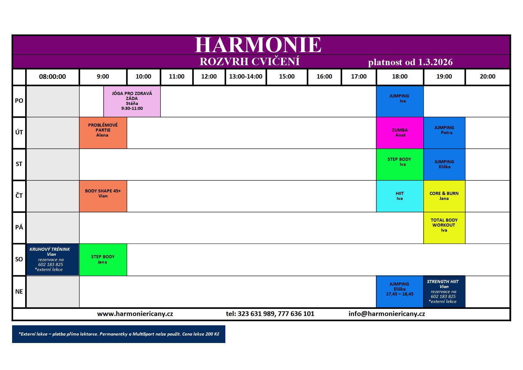ROZVRH CVIČENÍ PLATNÝ OD 1.3.2026